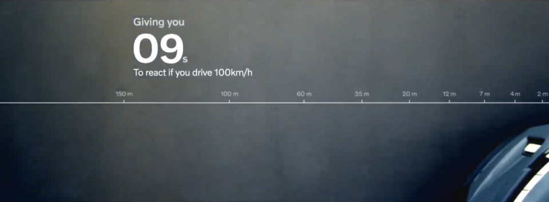 250 米,这相当于 50 辆 EX90 的长度,也意味着即便以 100km/h 的速度前进,也能给我们提供 9 秒用于躲避碰撞的额外时间。