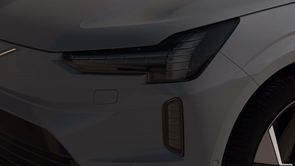 对于 EX90 的大灯来说,粗一看,它的总体线条风格上还是保留「雷神之锤」的特征,不过原本的灯带变成了颗粒感更分明的像素风,大概会是搭载了什么新的矩阵照明技术?就在你以为只是正常的细节风格升级时,EX90 只需要下面这一个动作,我相信你也会被它惊艳到。
