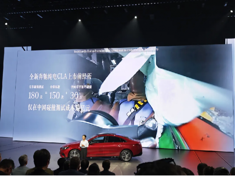 据说,各式各样的实车碰撞试验,全新奔驰纯电 CLA 上市前共经历了 180 次,这当中,仅仅在中国进行的测试,成本就已经上亿元,这种量级的投入,在行业里是绝无仅有的。
