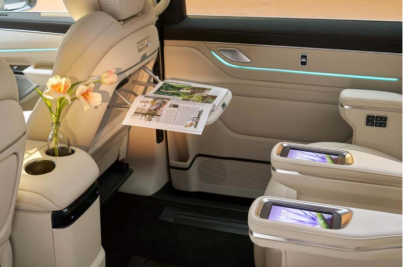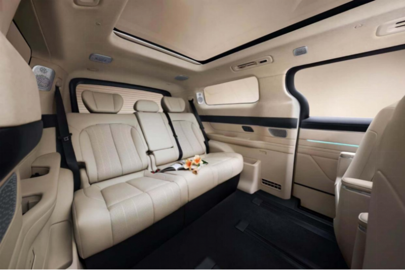 内部座舱呈现出了旗舰级的奢适格局,舱内色彩温暖柔和,营造出自然舒适的氛围。超大面积全景天幕延伸至第三排上方,使得整车视野更加开阔通透。二排座椅宽大舒适,尽显尊贵感;三排同样空间充裕,打破了传统MPV三排局促的刻板印象,也意味着用户将享受到与以往截然不同的豪华出行体验。二排小桌板进一步拓展了使用场景,移动办公、会客等皆可轻松实现。细节处的储物空间设计,也体现出银河V900无微不至的贴心考量。